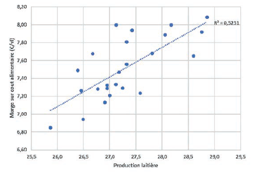 Production laitière et marge sur coût alimentaire